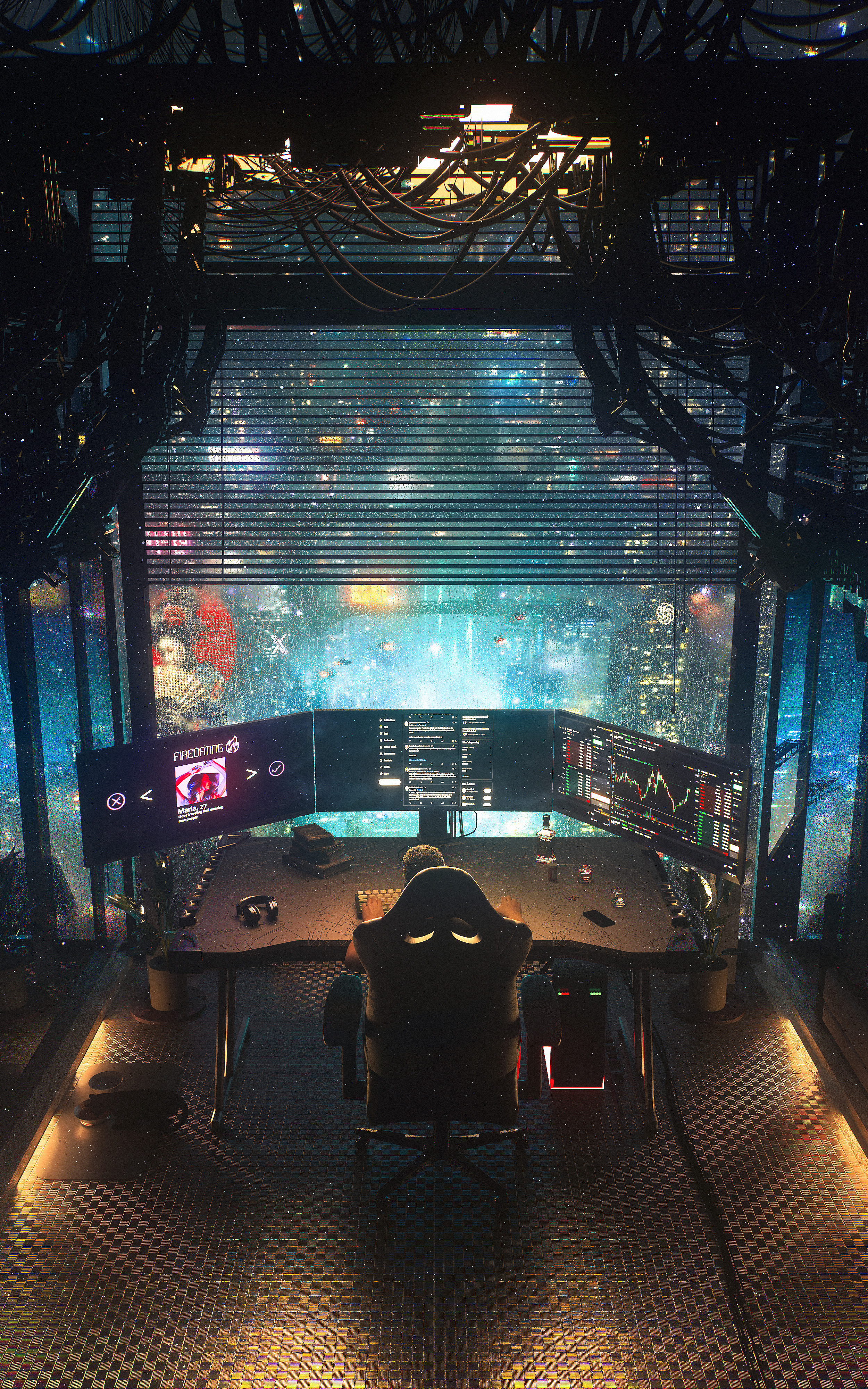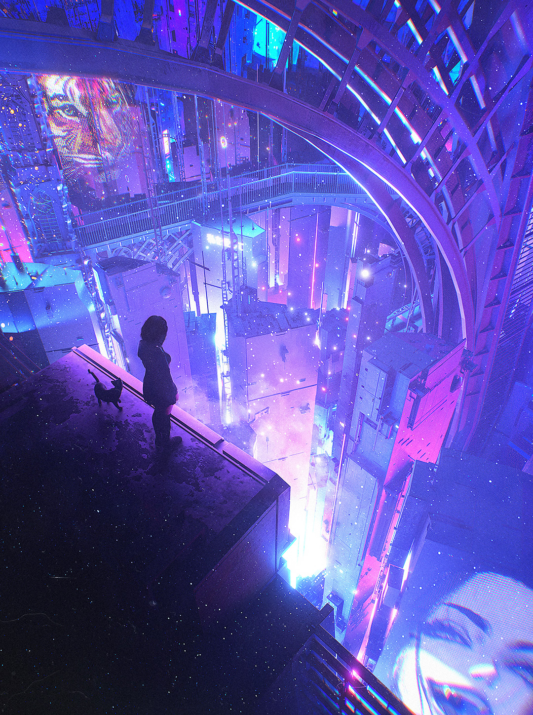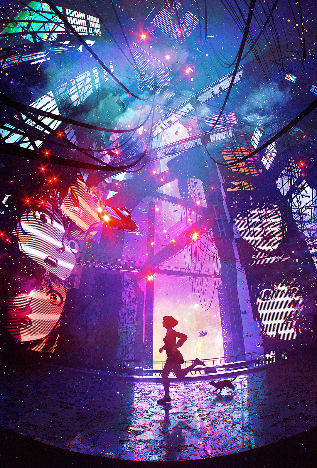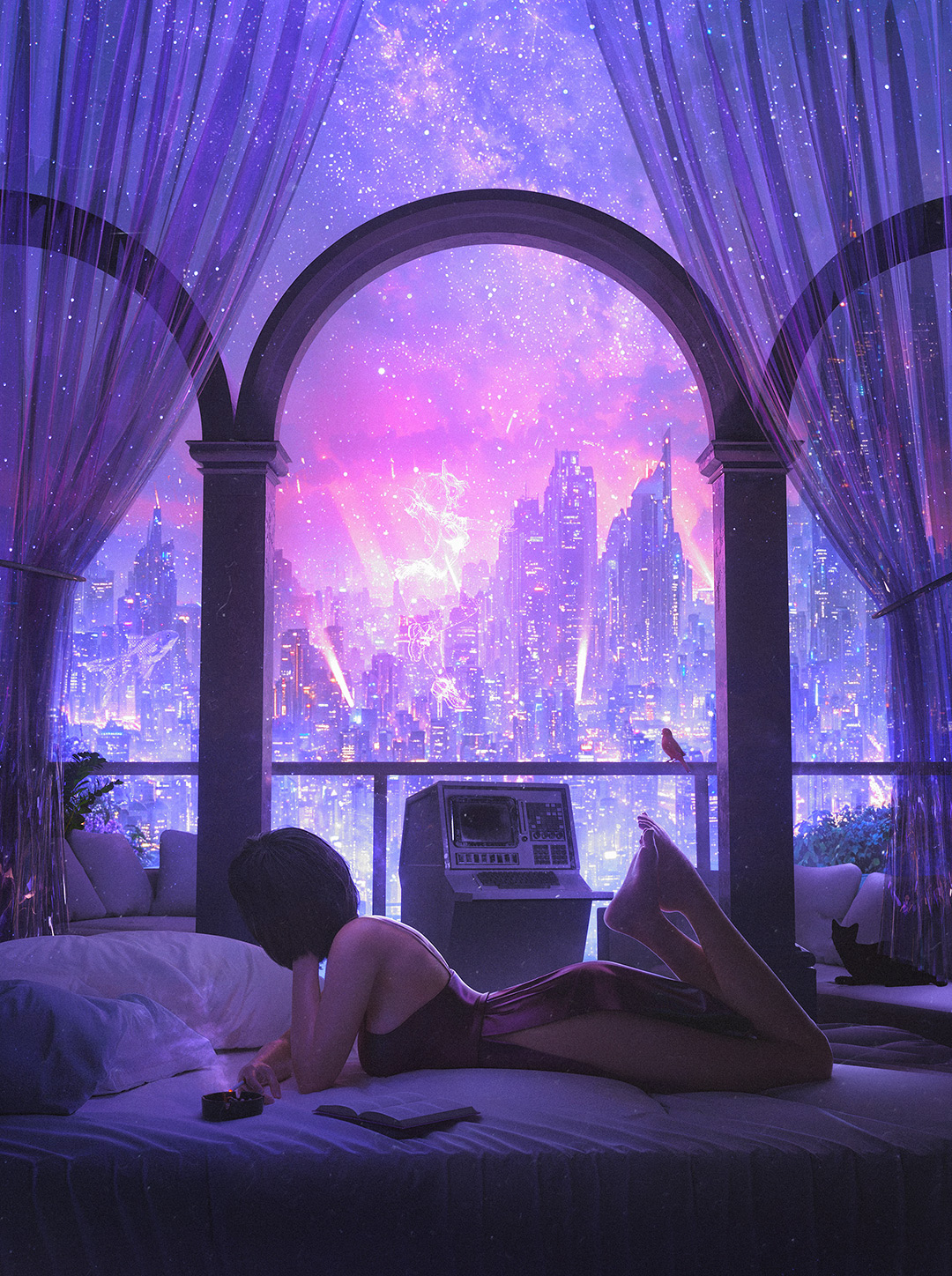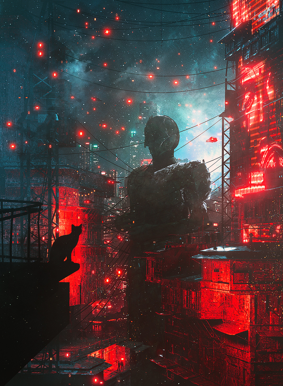 “In the neon-lit labyrinth of a dystopian future, where the digital and organic coalesce into a seamless continuum, arises a visionary: Dangiuz. His art is a beacon in the murky fog of corporate dominion and digital despotism, a rebellion against the cold calculus of a data-driven world. Through his romantic cyberpunk oeuvre, Dangiuz redefines our perception of technology and humanity, intertwining the two in a narrative of resilience, beauty, and love.” — W.S. Yang in "The world can be so beautiful"