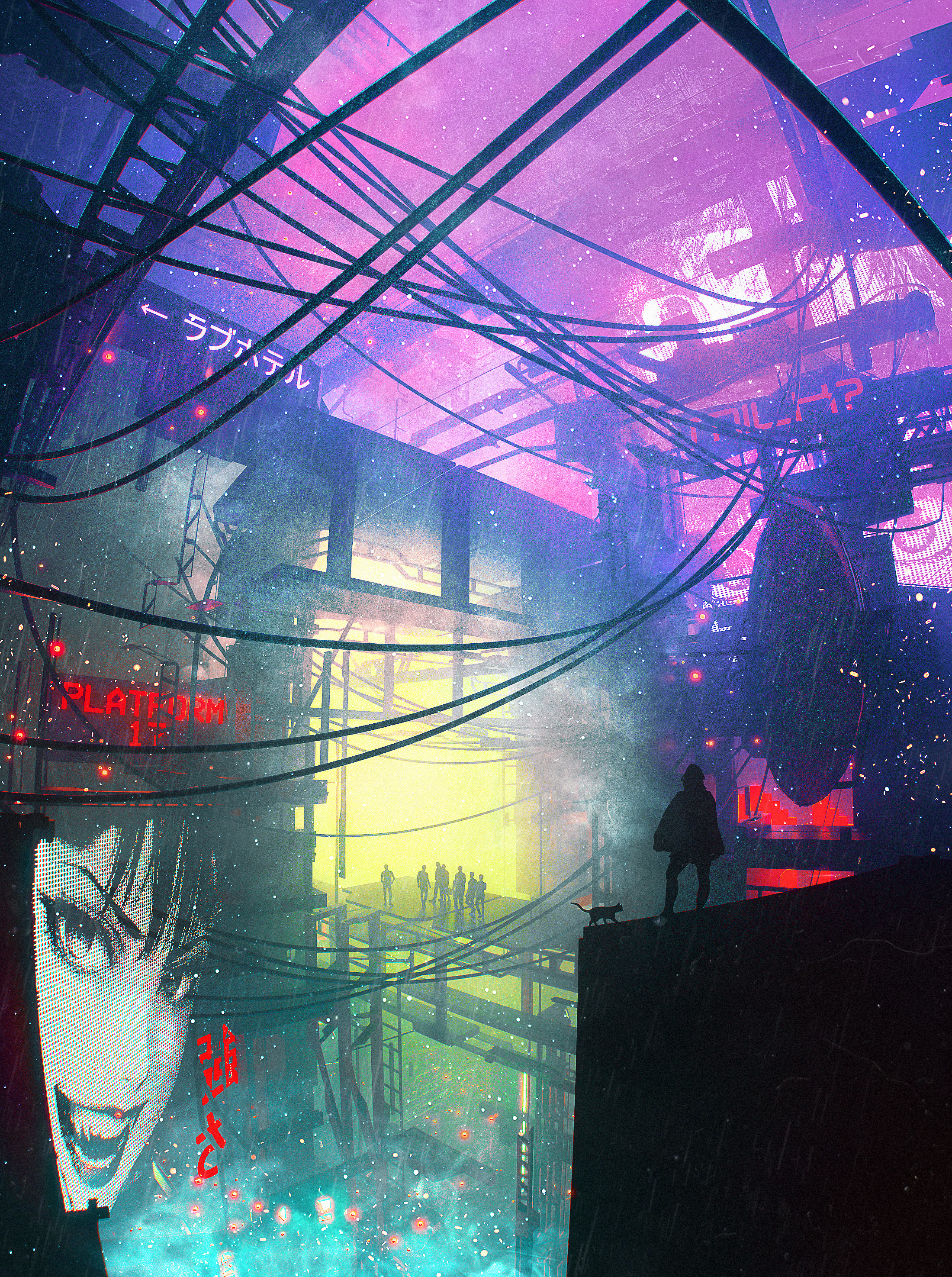 "In the neon-lit labyrinth of a dystopian future, where the digital and organic coalesce into a seamless continuum, arises a visionary: Dangiuz. His art is a beacon in the murky fog of corporate dominion and digital despotism, a rebellion against the cold calculus of a data-driven world. Through his romantic cyberpunk oeuvre, Dangiuz redefines our perception of technology and humanity, intertwining the two in a narrative of resilience, beauty, and love." — W.S. Yang in "The world can be so beautiful"